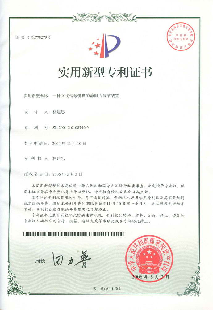 該裝置可以有效地調整鍵盤的靜阻力的強弱,能夠適應于不同人群彈奏手感的特殊要求。